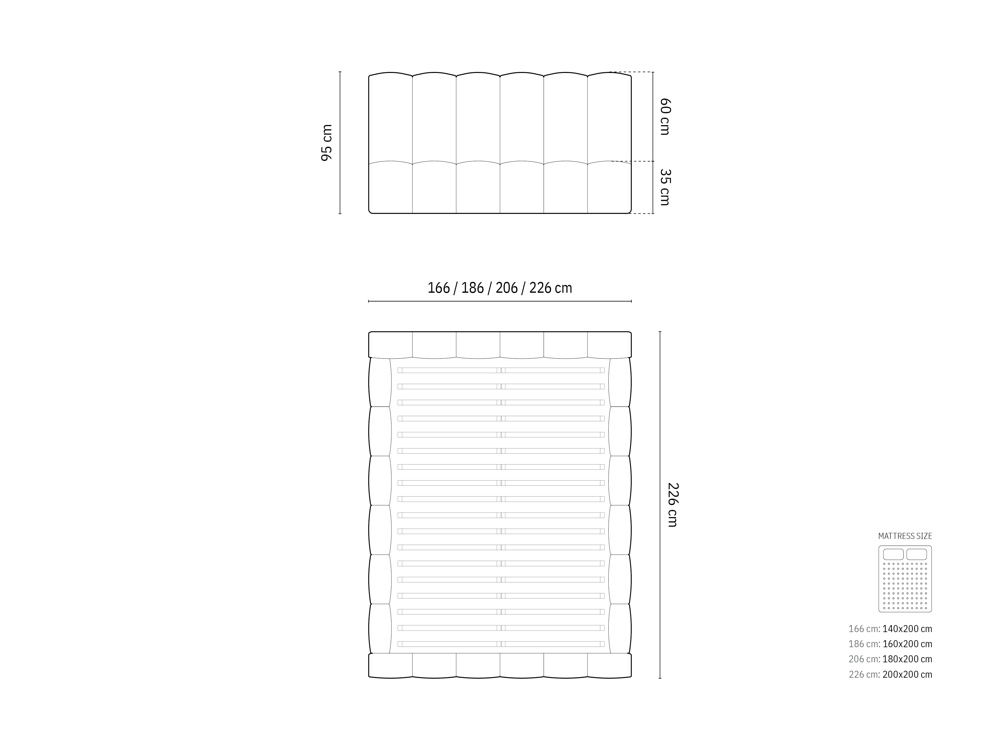 Cadre en pin massif, MDF, ressorts ensachés, plastique noir